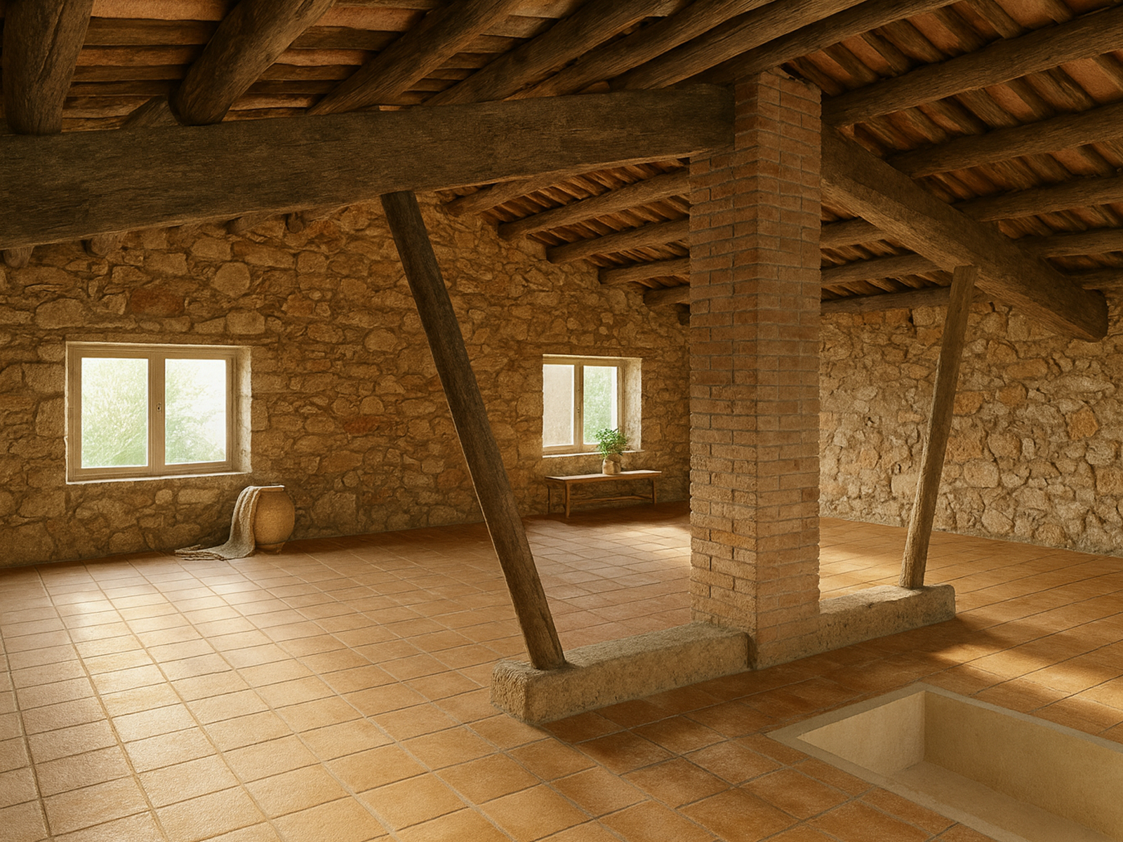 Las necesidades de esta fase contemplan, en primer lugar, la restauración de la solera, con el objetivo de asegurar la correcta conservación del interior de la construcción. En el exterior, se prevé el rejuntado de la mampostería de piedra original, respetando los materiales y técnicas tradicionales, así como la reparación de la cubierta de teja árabe, elemento clave para la protección del edificio frente a las condiciones climáticas.